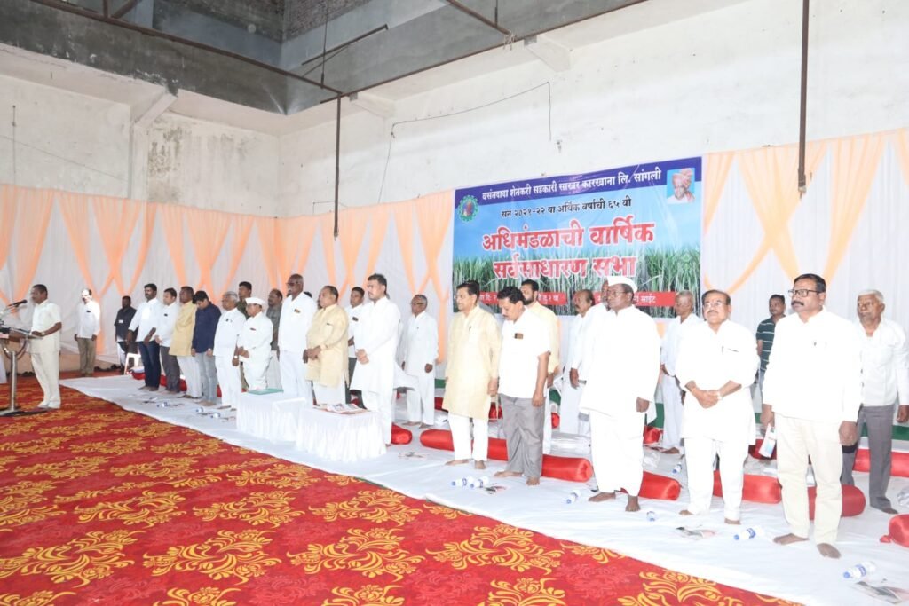 वसंतदादा शेतकरी सहकारी साखर कारखाना येथे ६५ वी तसेच सन २०२१-२२ आर्थिक वर्षाची अधिमंडळाची वार्षिक सर्वसाधारण सभा खेळीमेळीच्या वातावरणात आणि सभासदांच्या उत्स्फूर्त प्रतिसादात पार पडली.